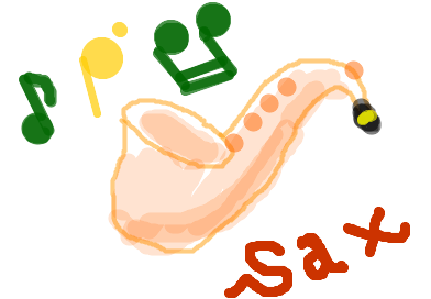 ↑こーんな形をした金属製の吹奏楽器です。(金色とか銀色とかピンクゴールドとかありますけど。)ジャズやロック、ポップスにビックバンドに吹奏楽と、実に色々なところで活躍しています。