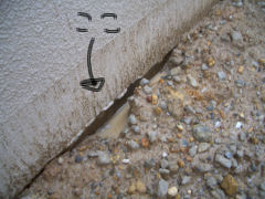 建物の土台部分に泥の水たまりがー。
