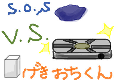 菜の花は、掃除の基本に激落ち君(これは確か商標。モノとしてはメラミンフォーム)を愛用していますが、彼には恐ろしい欠点が!それは油汚れに弱い。とれなくはないですが、激落ち君本人が、そのあと使い物にならなくなるという致命的なダメージを受けてしまいます。そういうときのために登場するのがS.O.S。これはDスキンのスポンジの商品名です。(決してイチゴのショートケーキではありません。)これは落ちる!油汚れ系もすっきり!でも、だからと言ってこれでお皿やコップは洗えません。どちらも決して万能ではないから、両方使っています。適材適所。これ大事。